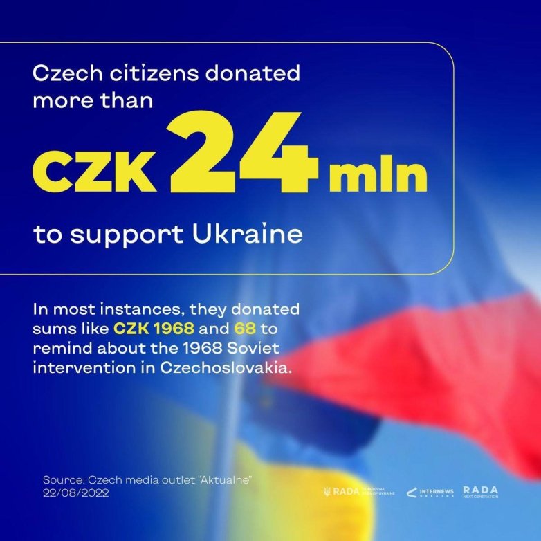 ¡Gracias por su apoyo a Ucrania!. Tenemos mucho en común, puesto que nuestros pueblos saben muy bien lo que los «libertadores rusos», o invasores terroristas, traen de maldad en contra de nuestros pueblos libres de Europa. No olvidemos las lecciones de historia del pasado y del presente. , palabras de la vocera de la Verjovna Rada de Ucrania, Olena Kondratiuk.