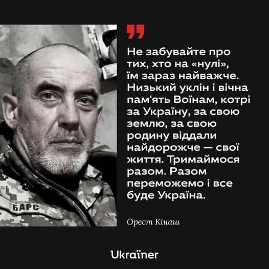 Únase a nosotros cada día para guardar un minuto de silencio en honor a los soldados, hombres, mujeres y niños que perecieron en esta guerra salvaje. Dieron su vida por Ucrania y Europa. Descansen en paz: Illia Hrabar de 33 años, Oleh Kostyrenko de 51, Valeriy Lapukhin de 30 e Ihor Pozitiv.