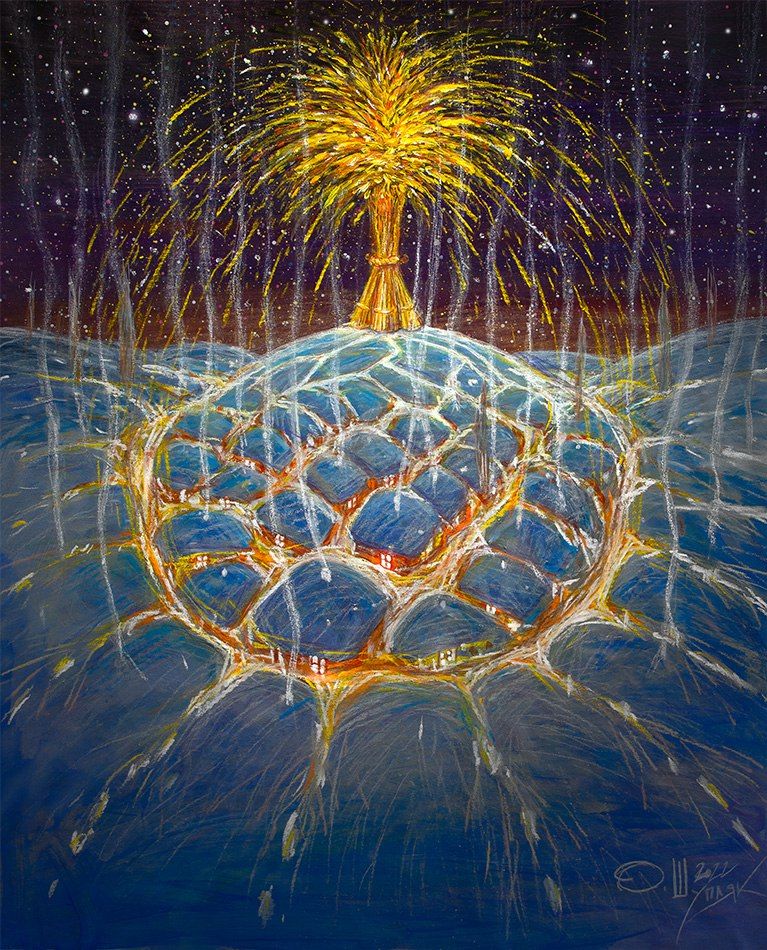 Diduj en la colina, Oleh Shupliak. La gavilla de trigo o «diduj» en el hogar es un recordatorio de los antepasados y la larga tradición agrícola en🇺🇦