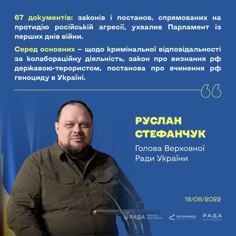 Palabras de Olena Kondratiuk, portavoz de la Verjovna Rada de Ucrania.