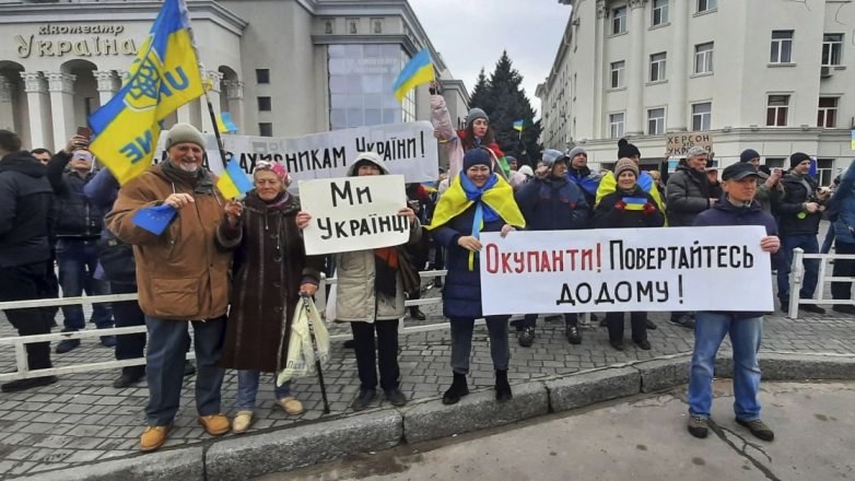 Los residentes que no fueron asesinados por los rusos, realizan manifestaciones y protestas por el hambre que impera en la ciudad, dado que los ocupantes no proveen a los habitantes con alimentos, han intentado suspender la distribución de ayuda humanitaria de la Cruz Roja, y los ciudadanos están desesperados y hambrientos.
